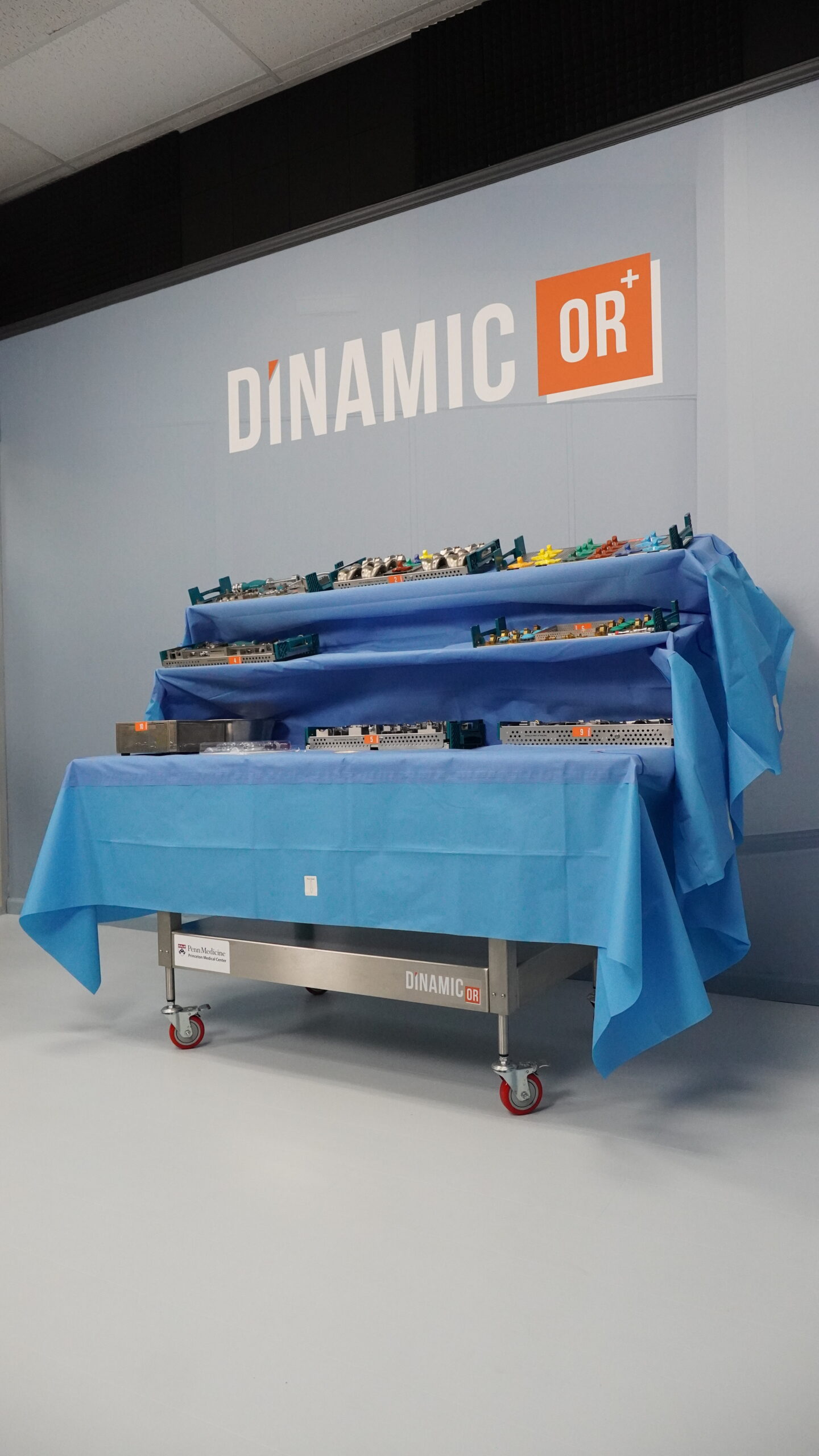 Our demo center is designed to feel like you’re actually in an operating room. Unlike green screen setups, our space includes a wall mural that accurately represents a to-scale operating table. This setup allows you to visualize and experience the ease of reaching between tables, just as you would in a real OR. The immersive environment ensures that you can fully appreciate the functionality and benefits of our solutions.